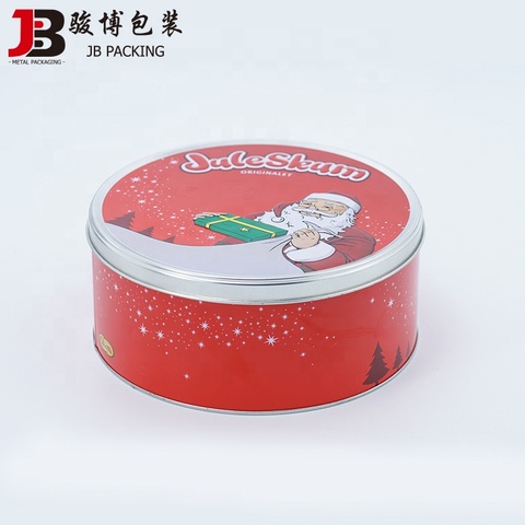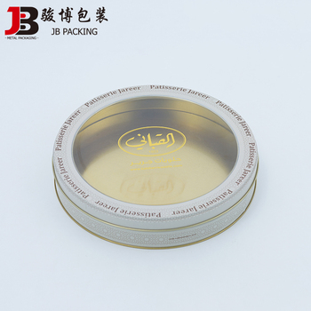 Embalagem de caixa de lata de design personalizado, embalagem de caixa de metal de forma redonda, com tampa de janela transparente de pvc